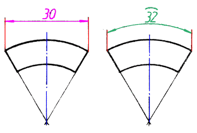 標注弦長和弧長時,如這兩個例圖所示,已寸界線應平行于弦的垂直平分線。標注弧長尺時,尺寸線用圓弧,并應在尺寸數字上方加注符號“^”