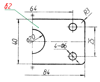 標注板狀零件的尺寸時,可如例圖中所示,在厚度的尺寸數字上方加注符號“8”。