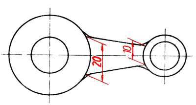 如例圖所示,在光滑過渡處,必須用細實線將輪廓線延長,并從它們的交點引出尺寸界線。