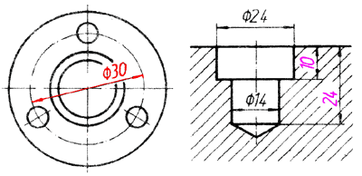 第一種方法:尺寸數字應按左上圖所示方向注寫,并盡可能避免在圖示30范圍內標注尺寸,當無法避免時可按右上圖的形式標注。 第二種方法:在不致引起誤解時,對于非水平方向的尺寸,其數字可水平地注寫在尺寸線的中斷處,如下面的兩圖所示。在一張圖樣中,應盡可能采用同一種方法,一般應采用第一種方法注寫。